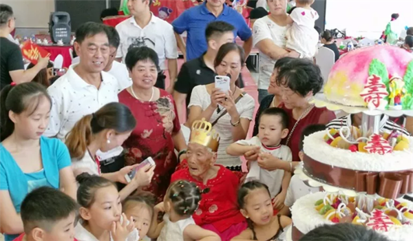 芬芳的生日花篮、满桌的桃李瓜果、香甜的生日蛋糕、亲人们脸上掩饰不住的洋洋喜气,汇成了温馨喜庆的暖流。8月11日一大早,太和县城关镇吴营社区后徐庄陈秀荣老人的子孙们都从四面八方赶回家中,齐聚在她身边,一起迎来了老人的97岁生日。