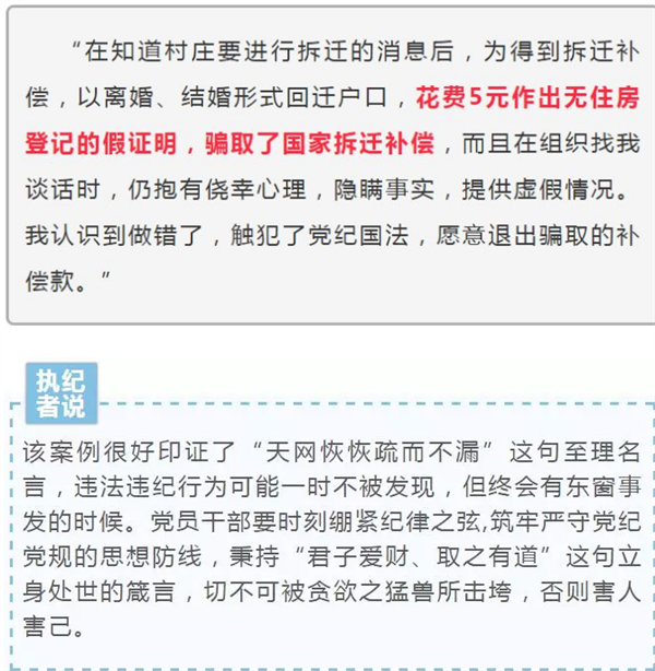 近日,临泉县纪委公布了临泉县国土局工作人员于某违规套取拆迁补偿款问题。作为国家公职人员,于某花5元办假证、又与妻子假离婚,骗取拆迁款60余万元,2017年11月,临泉县纪委对于某立案审查。情况核查经查